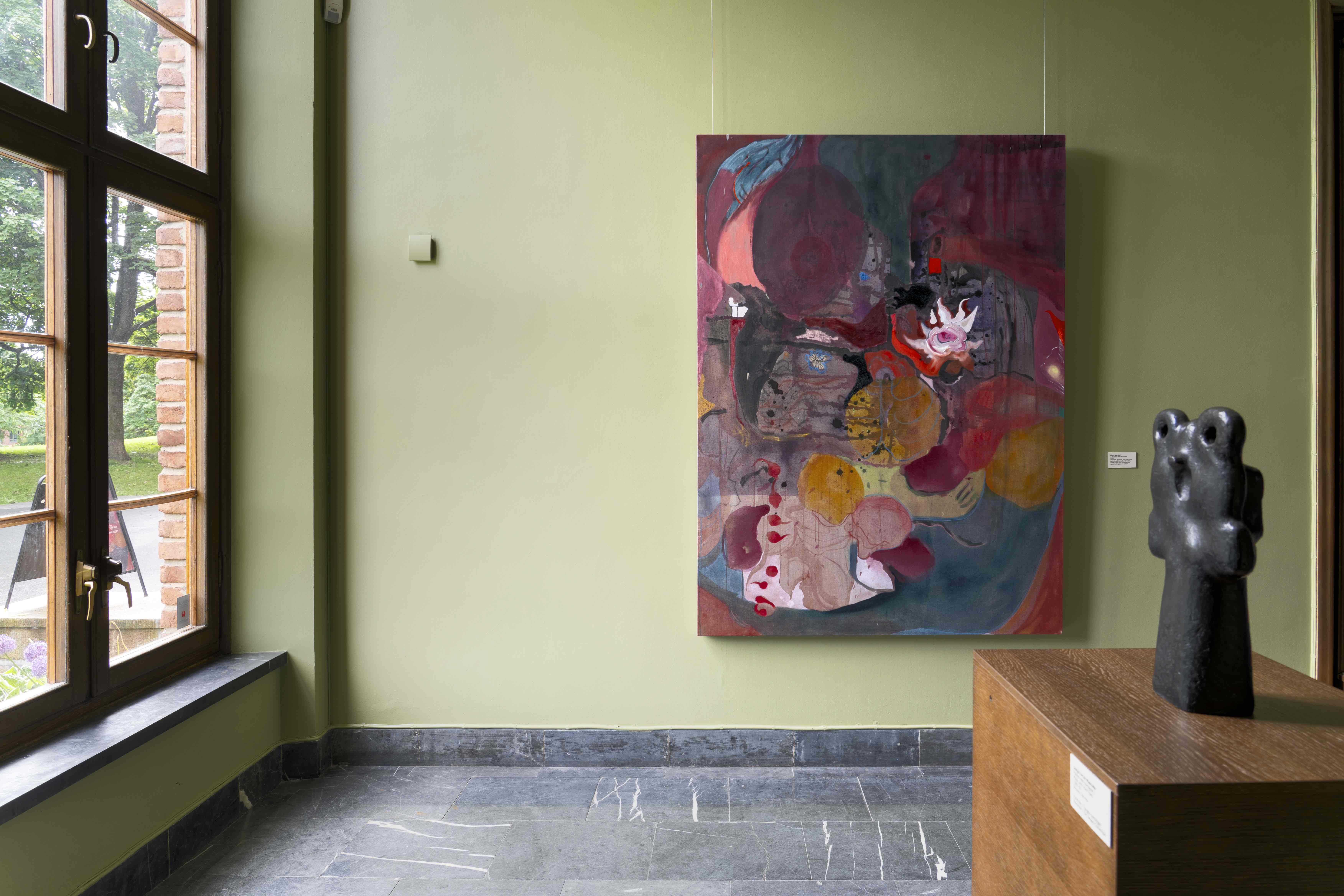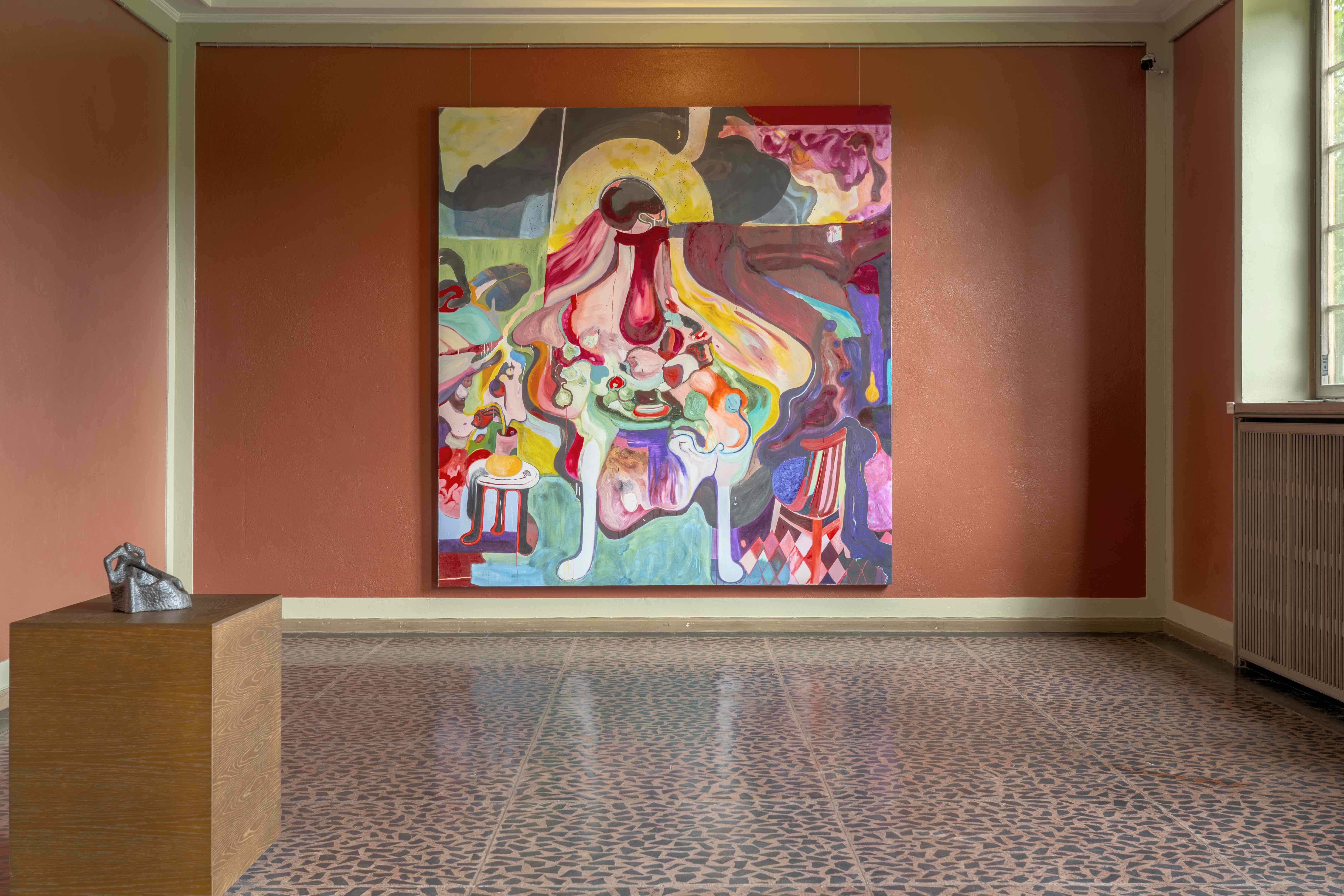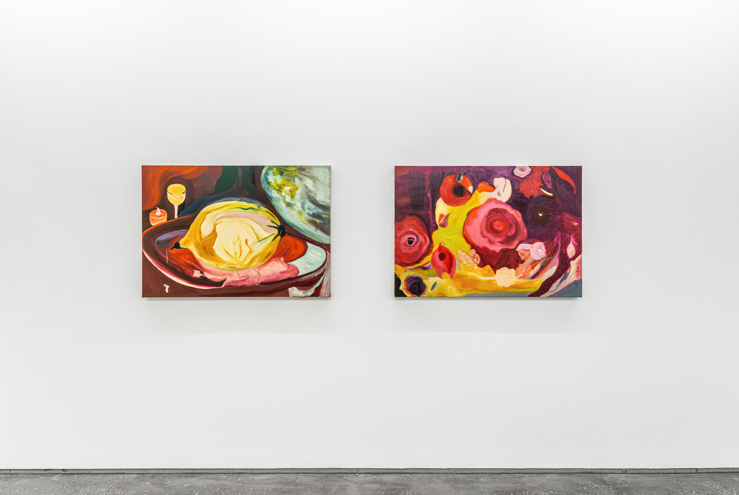 Emily Gernild (b. 1985) is a painter based in Copenhagen. She received her formal training at the Funen Art Academy and the Düsseldorf Art Academy, earning an MA in 2016. Gernild’s practice is characterised by assertive, textured, and chromatically rich paintings that engage with motifs drawn from dream imagery, idiomatic expressions, and conventions of historical still life. Her work interrogates and expands upon these sources, seeking to extract new meaning from established visual tropes. Applying both oil paint and rabbit-skin glue mixed with pigment, Gernild explores the dynamic interplay between figure and ground, utilising these materials to investigate different approaches to painting.