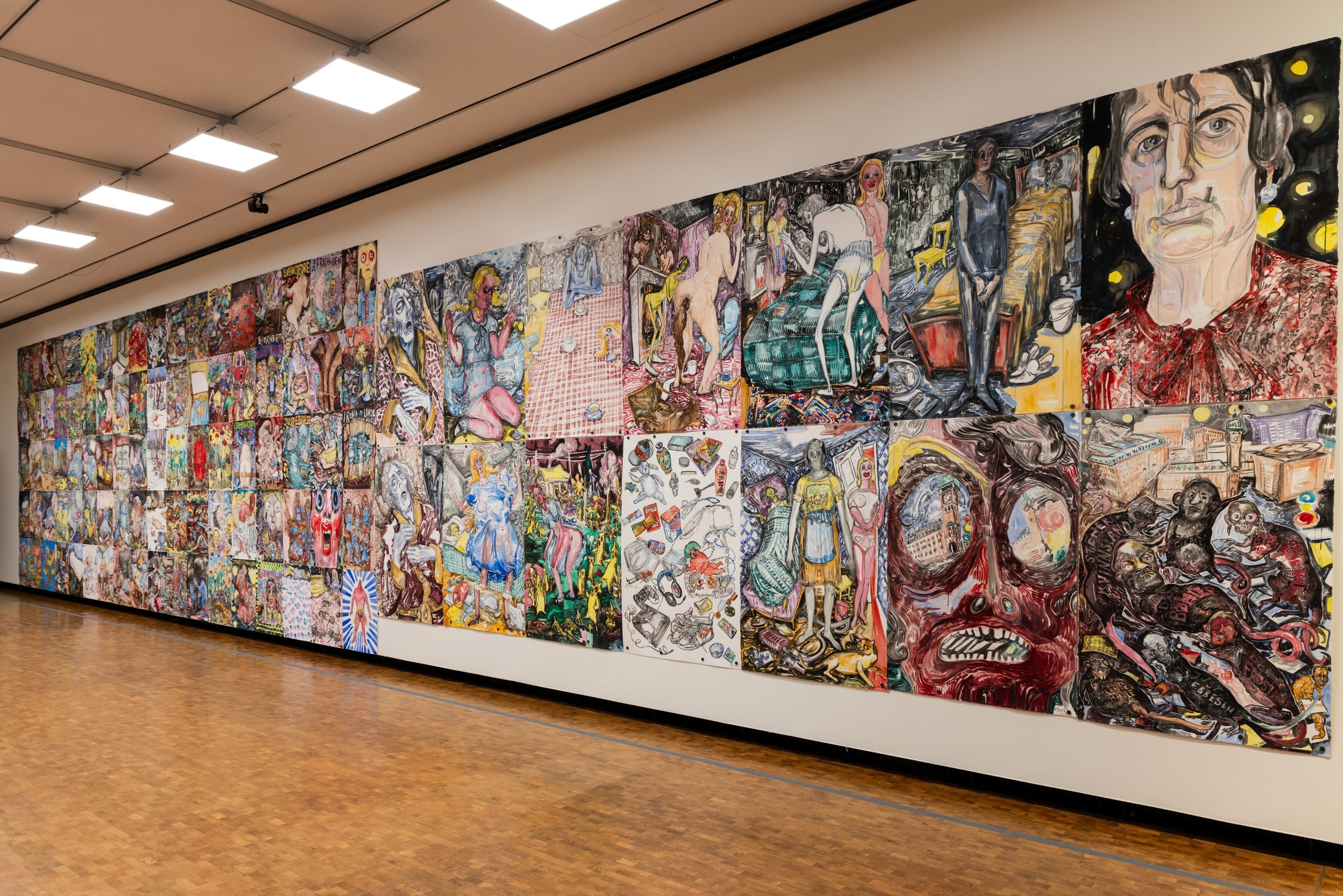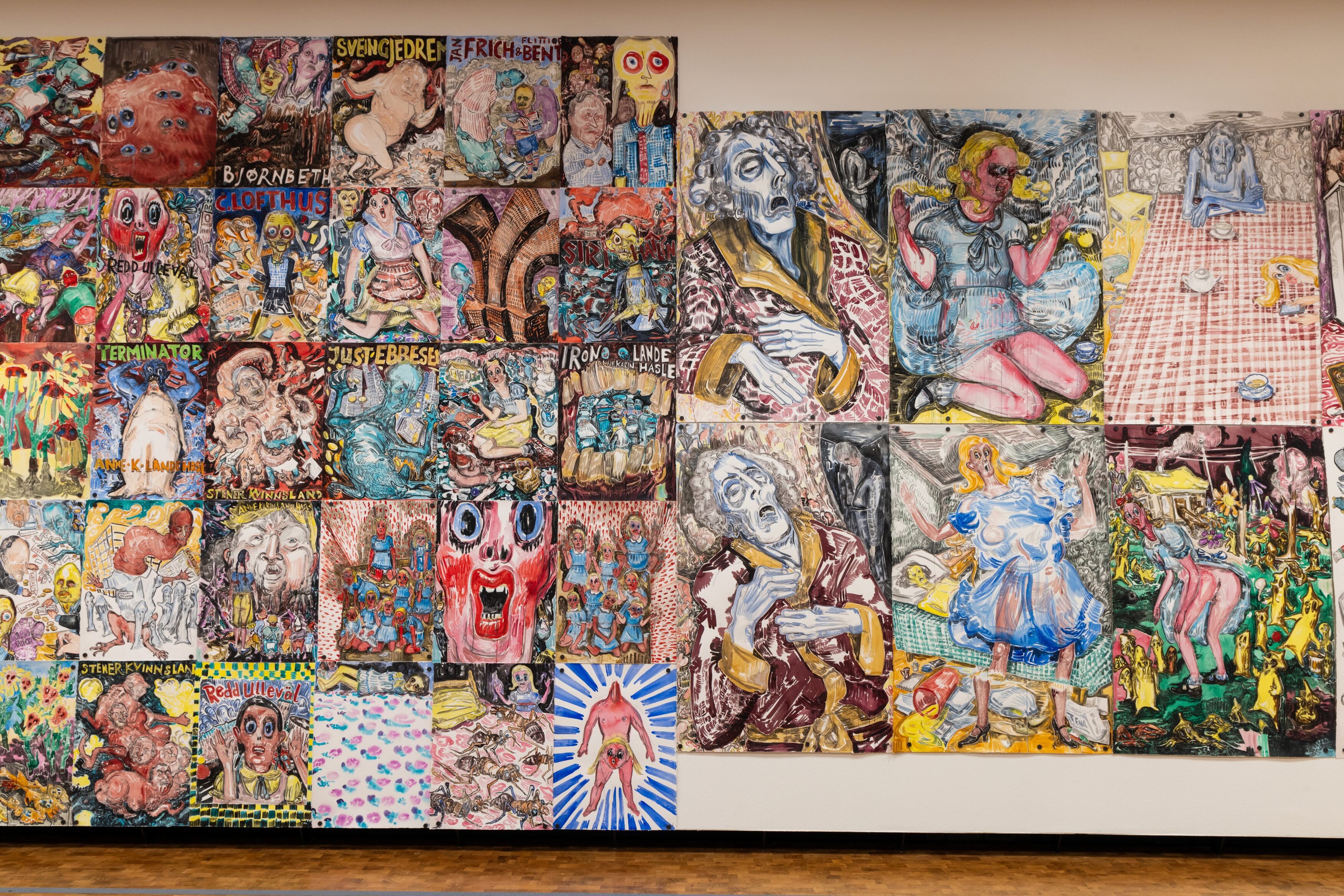 Vanessa Baird (b. 1963) is one of Norway’s most acclaimed contemporary artists, celebrated for her distinctive and unapologetic works on paper. Based in Oslo, she trained at the National Academy of the Arts in Oslo and the Royal College of Art in London. Over the years, Baird has established herself as a fearless and original voice, addressing deeply personal, social, and political themes through her richly detailed and vividly imaginative drawings. Her practice spans monumental murals and intimate series, combining surrealist impulses with biting humour and a feminist perspective. Baird’s work often draws from her own experiences, tackling subjects such as domestic life, the challenges of raising teenagers, and the complexities of caring for an aging parent. At the same time, her art engages with broader societal issues, delivering sharp commentary on inequality, politics, and human vulnerability. She is the recipient of the Lorck Schive Art Award (2015), Norway’s most prestigious award for contemporary artists. Baird co-founded the independent press Brunt hull with fellow artist Mette Hellenes and has published several critically acclaimed books with No Comprendo Press.